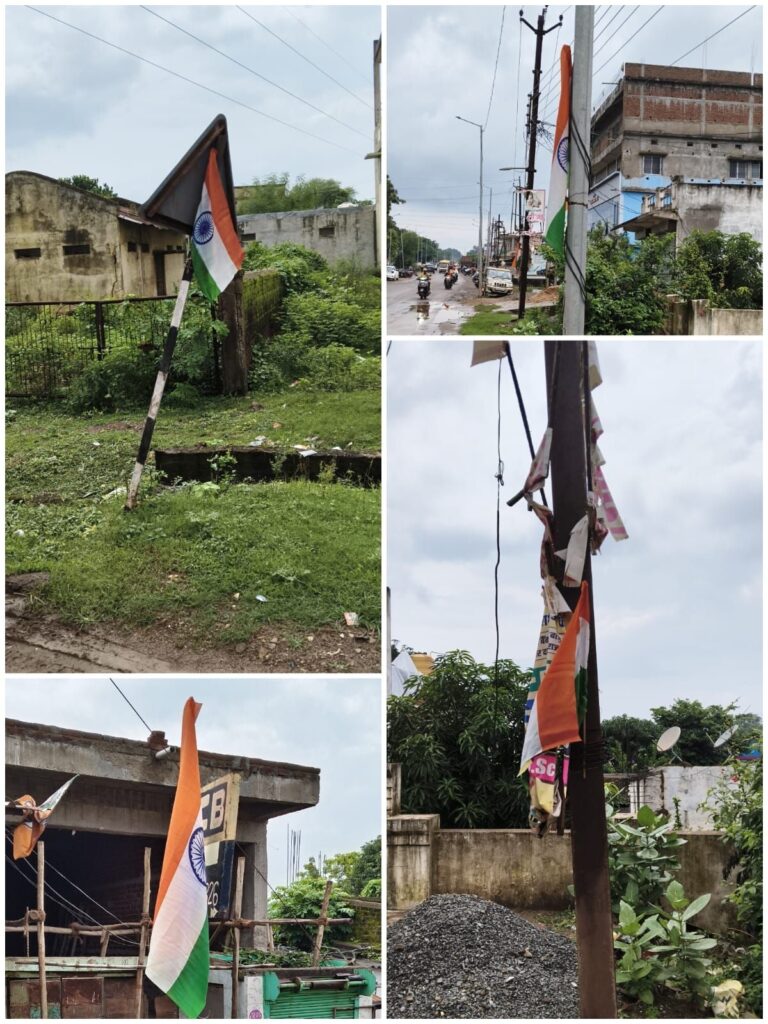 चिखलाकसा में तिरंगे का अपमान! बिजली के खंभों और सूचना बोर्ड पर लगाया गया राष्ट्रीय ध्वज…?