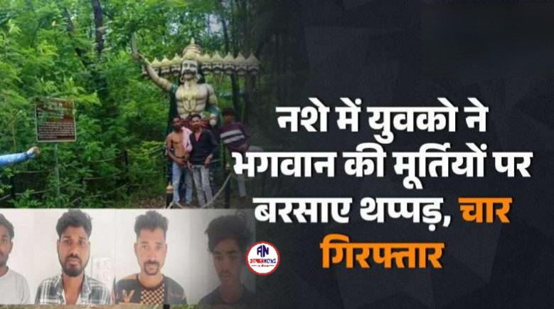 भगवान राम-हनुमान की मूर्तियों के साथ अभद्रता, नशे में धुत 4 युवक गिरफ्तार.. लोगों में उबाल..