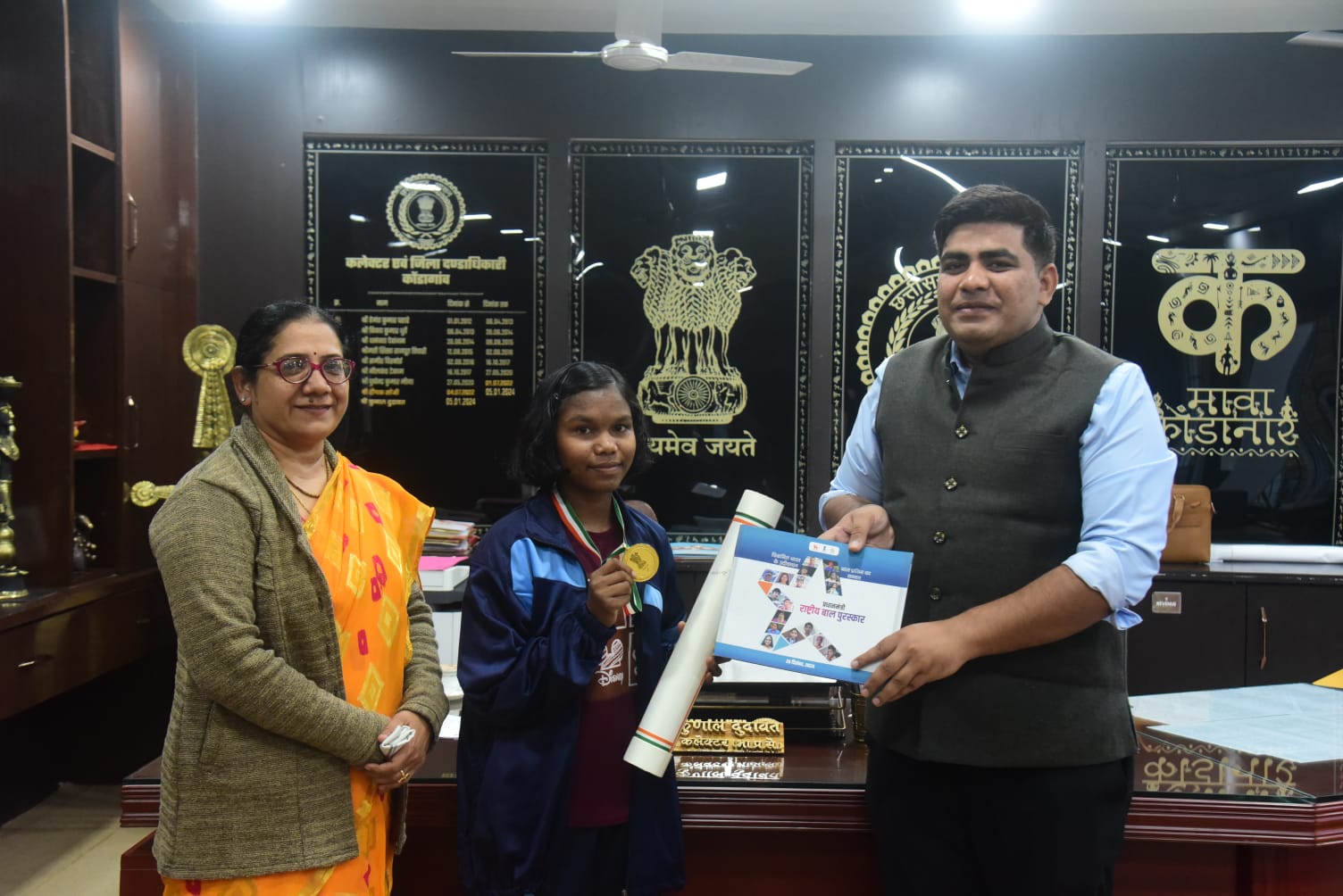 प्रधानमंत्री राष्ट्रीय बाल पुरस्कार 2024 से सम्मानित जूडो खिलाड़ी हेमबती नाग ने कलेक्टर से की भेंट