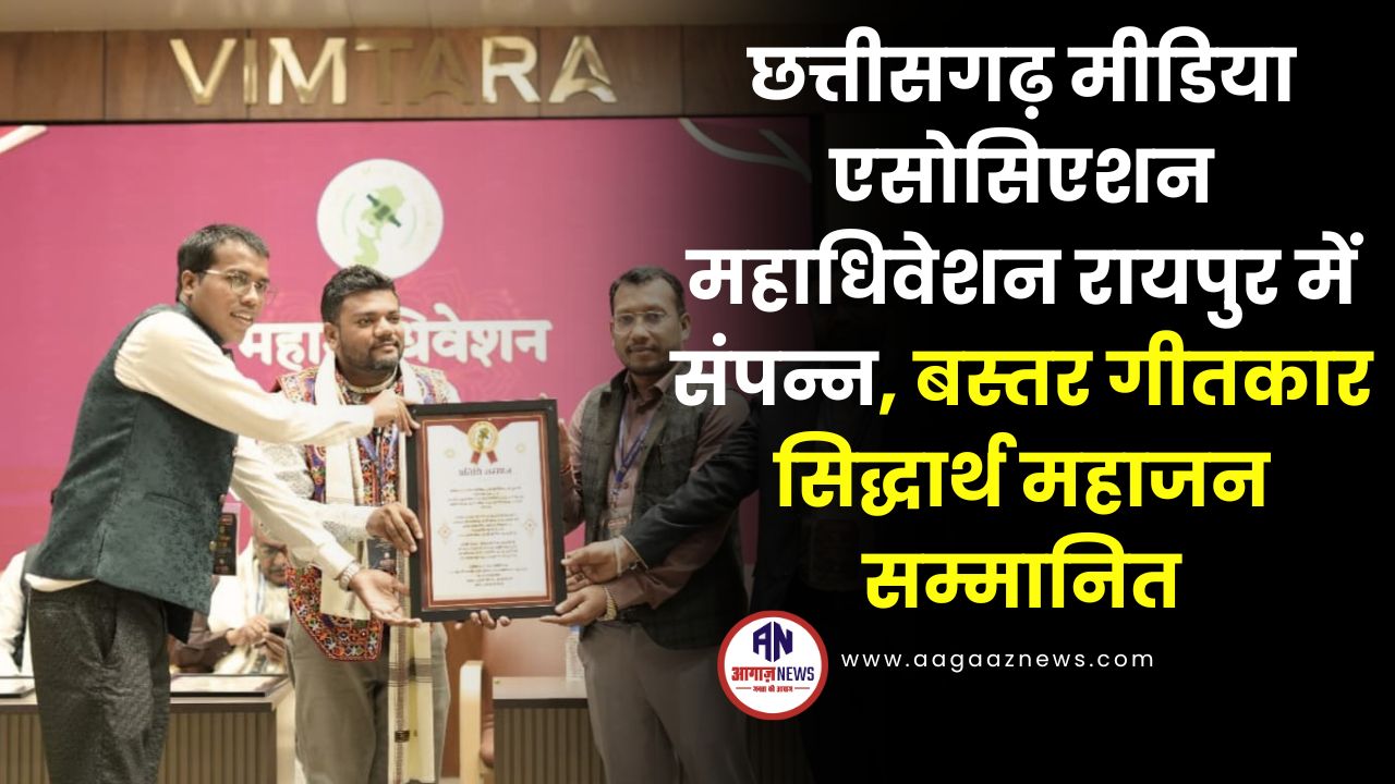 छत्तीसगढ़ मीडिया एसोसिएशन महाधिवेशन रायपुर में संपन्न, बस्तर गीतकार सिद्धार्थ महाजन सम्मानित