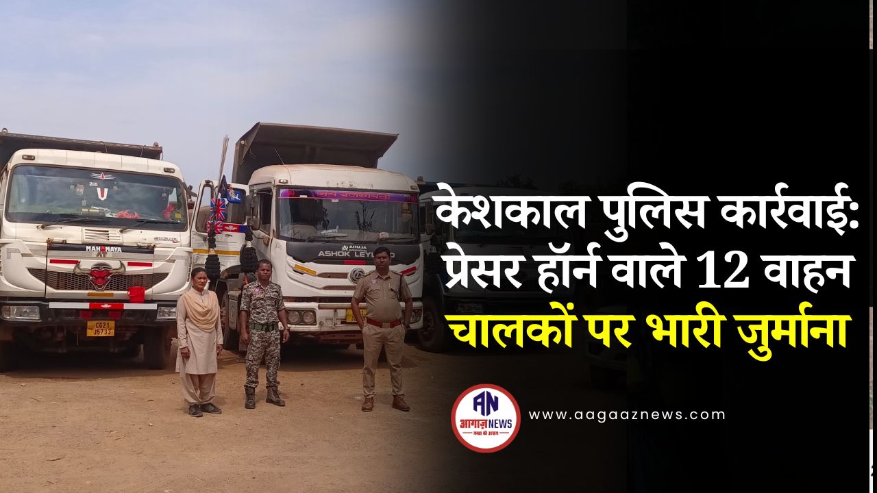 केशकाल पुलिस कार्रवाई: प्रेसर हॉर्न वाले 12 वाहन चालकों पर भारी जुर्माना