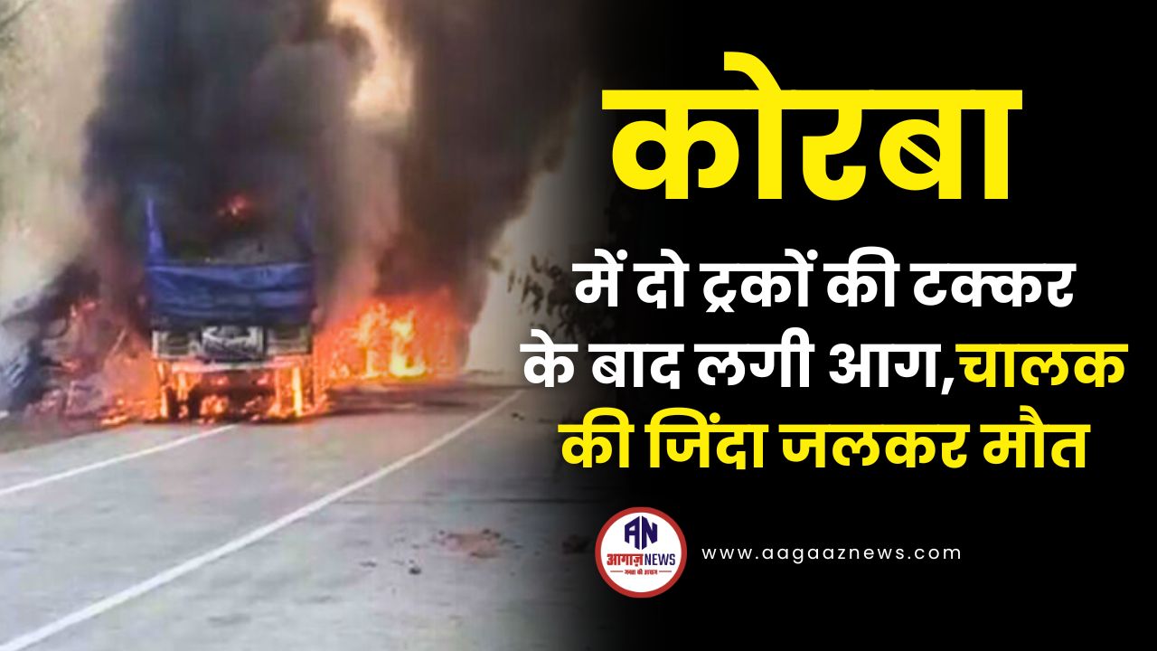 कोरबा में ट्रकों की भिड़ंत के बाद आग, चालक जिंदा जला