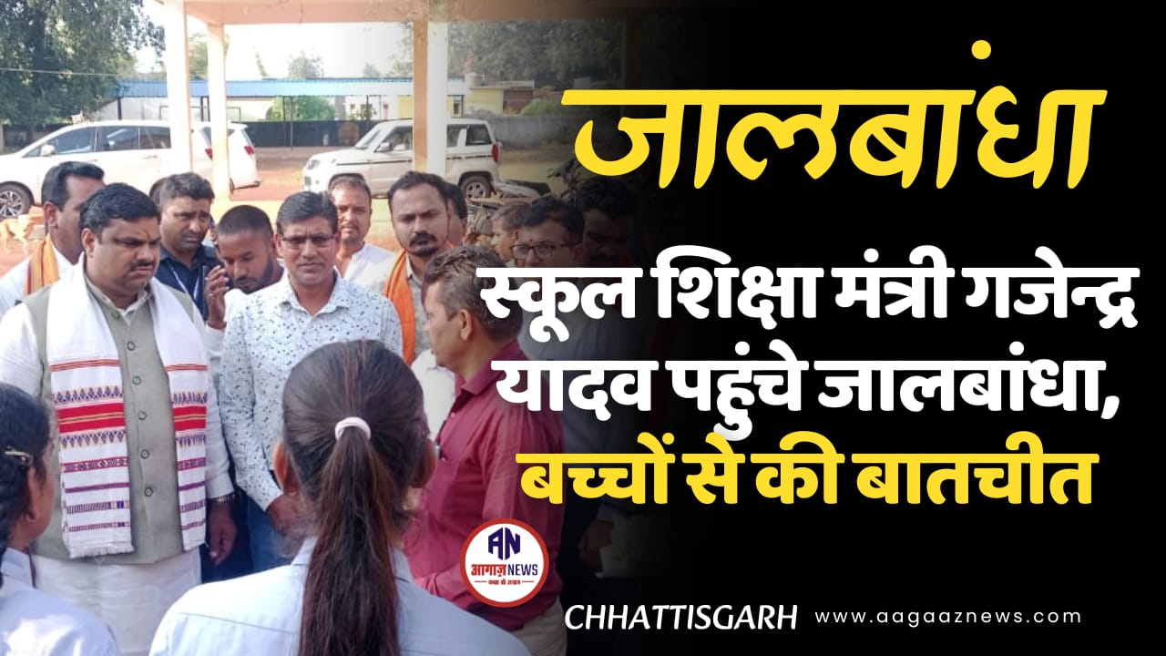 स्कूल शिक्षा मंत्री गजेन्द्र यादव पहुंचे जालबांधा, बच्चों से की बातचीत