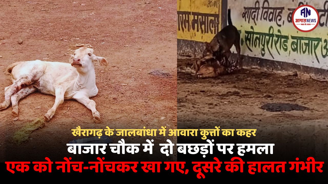 खैरागढ़ के जालबांधा में आवारा कुत्तों का कहर: बाजार चौक में दो बछड़ों पर हमला, एक को नोंच-नोंचकर खा गए, दूसरे की हालत गंभीर