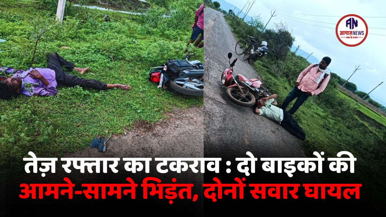 तेज़ रफ्तार का टकराव : दो बाइकों की आमने-सामने भिड़ंत, दोनों सवार घायल
