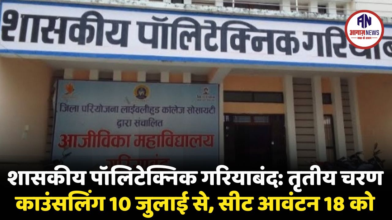 शासकीय पॉलिटेक्निक गरियाबंद में प्रवेश हेतु तृतीय चरण की काउंसलिंग 10 जुलाई से प्रारंभ, सीट आवंटन 18 जुलाई को