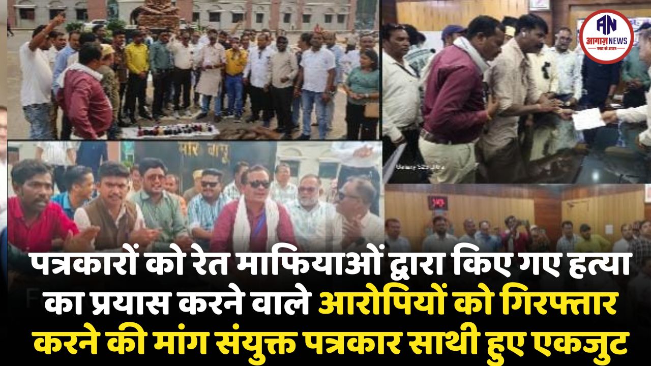 पत्रकारों को रेत माफियाओं द्वारा किए गए हत्या का प्रयास करने वाले आरोपियों को गिरफ्तार करने की मांग संयुक्त पत्रकार साथियों के द्वारा।