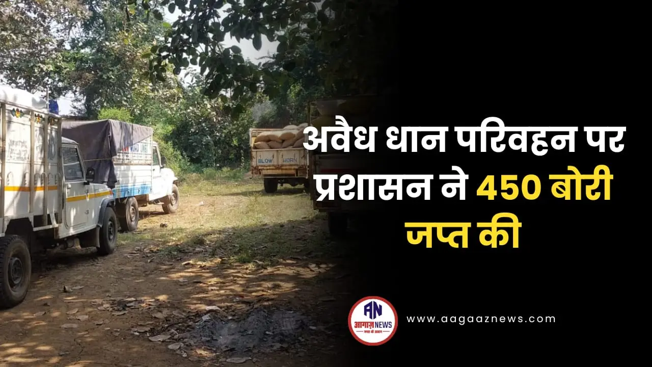 उरमाल में बड़ी कार्रवाई, अवैध धान परिवहन पर प्रशासन ने 450 बोरी जप्त की