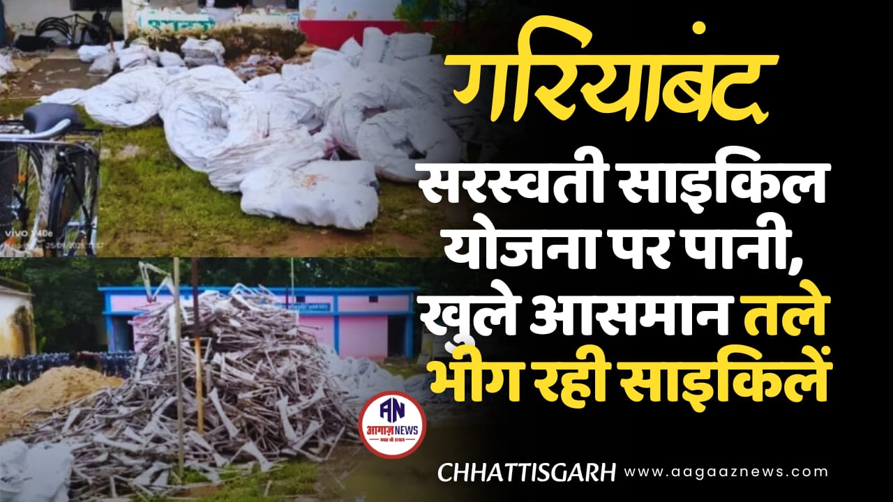 सरस्वती साइकिल योजना पर पानी, खुले आसमान तले भीग रही साइकिलें