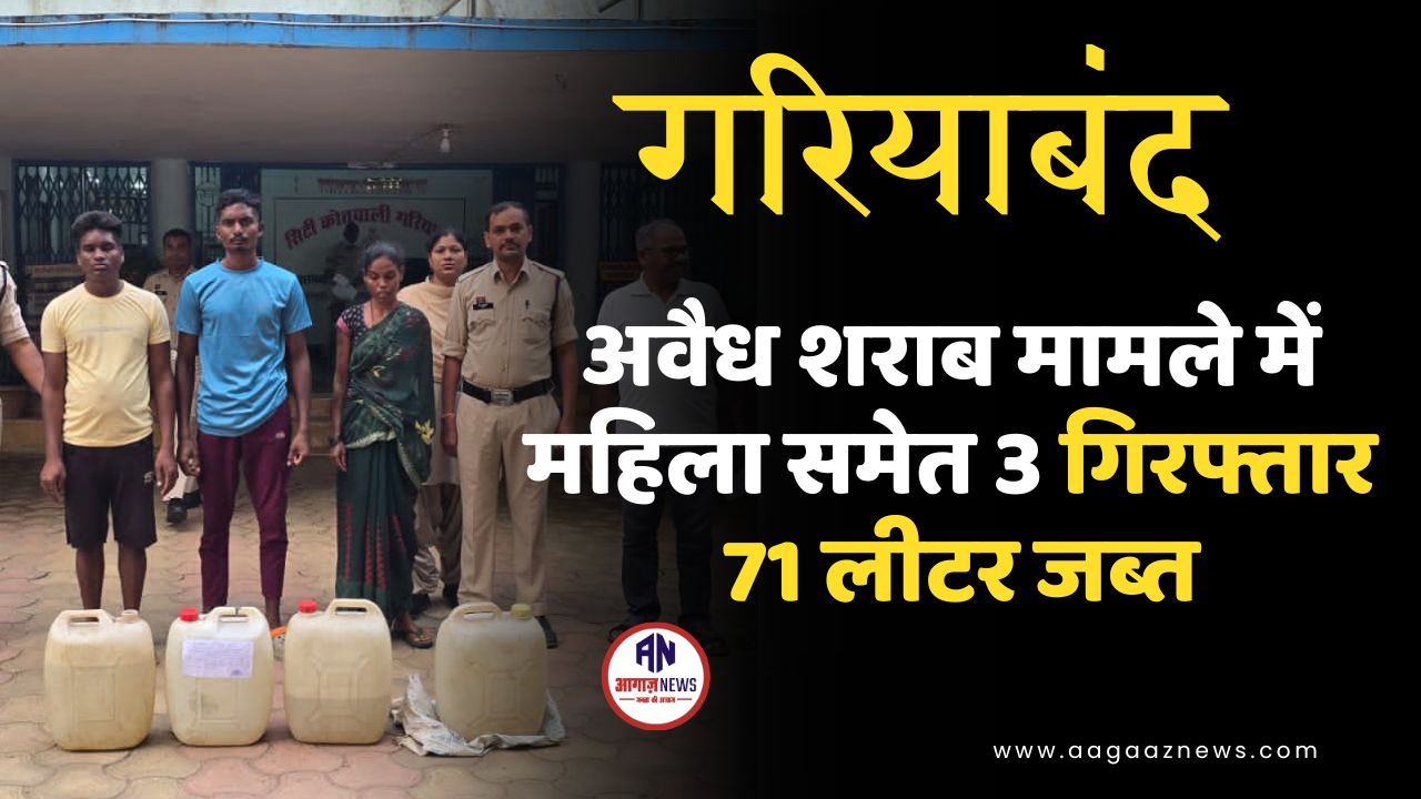 गरियाबंद: अवैध शराब मामले में महिला समेत 3 गिरफ्तार, 71 लीटर जब्त