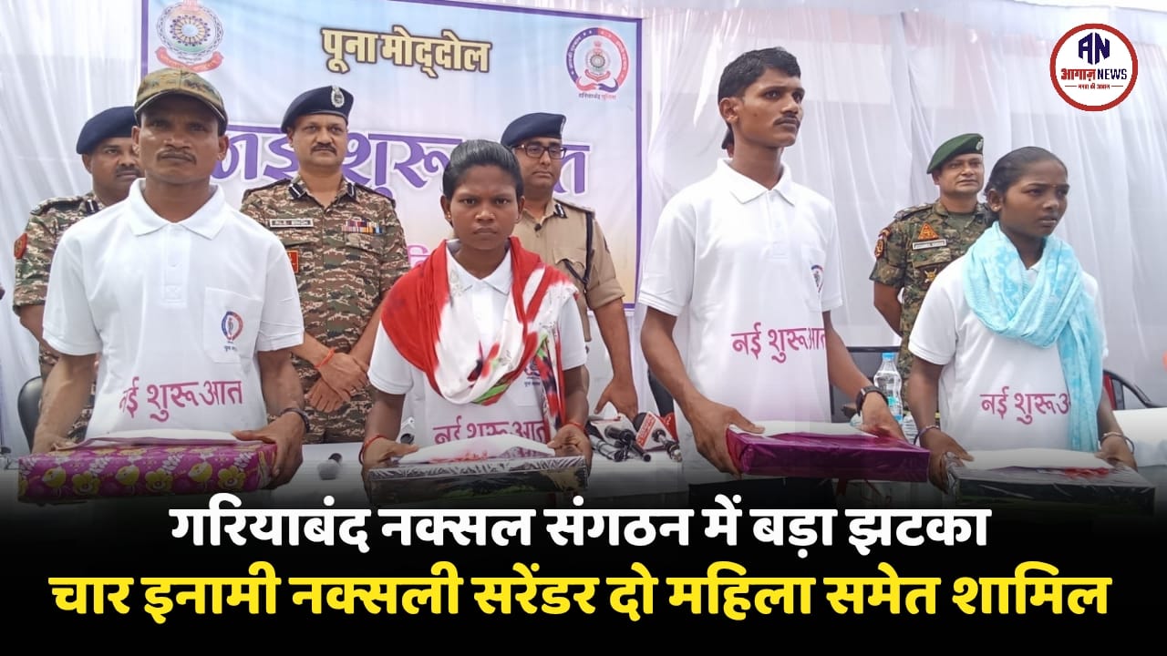 BIG BRAKING NEWS गरियाबंद में बड़ा झटका: चार इनामी नक्सली सरेंडर, दो महिला समेत शामिल