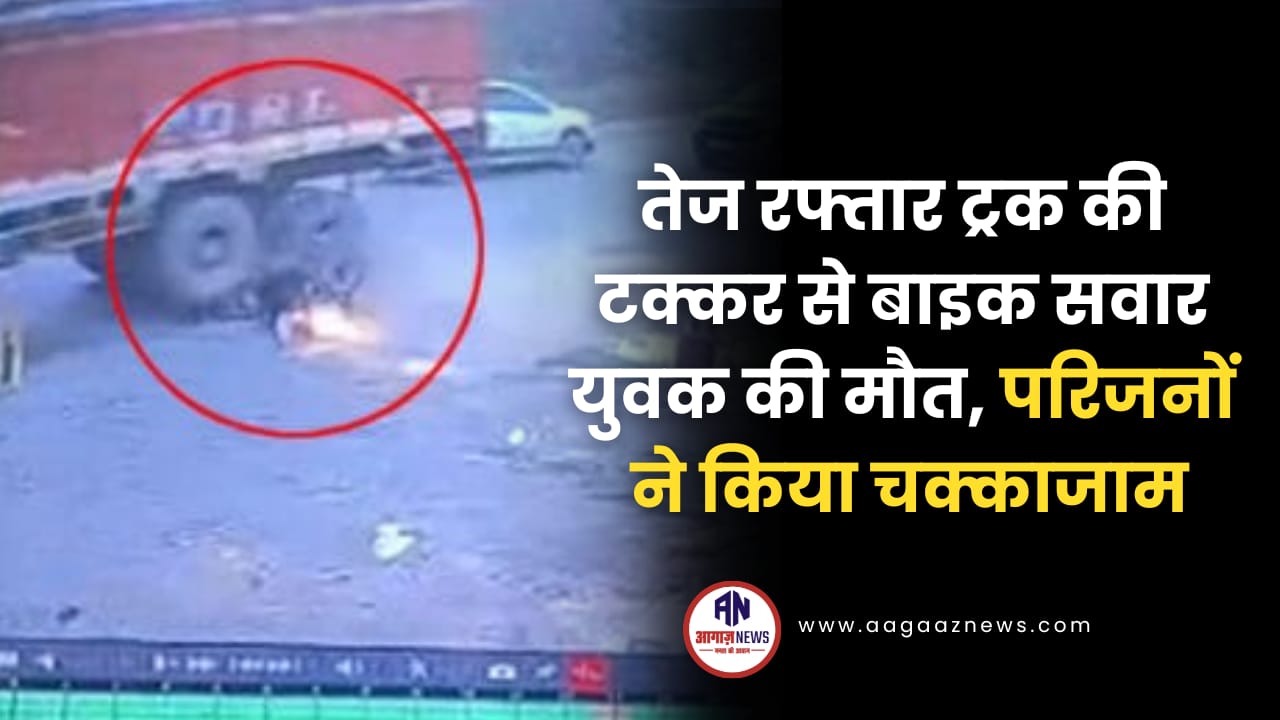 तेज रफ्तार ट्रक की टक्कर से बाइक सवार युवक की मौत, परिजनों ने किया चक्काजाम