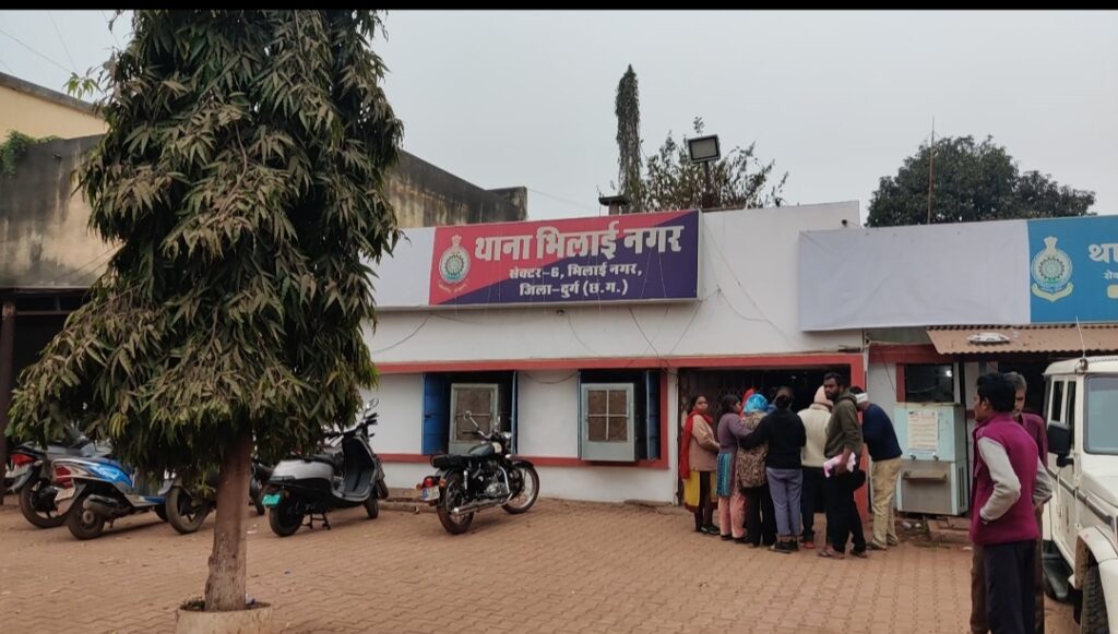 परिजन कर रहे हैं भिलाई नगर थाने का थाने का घेराव