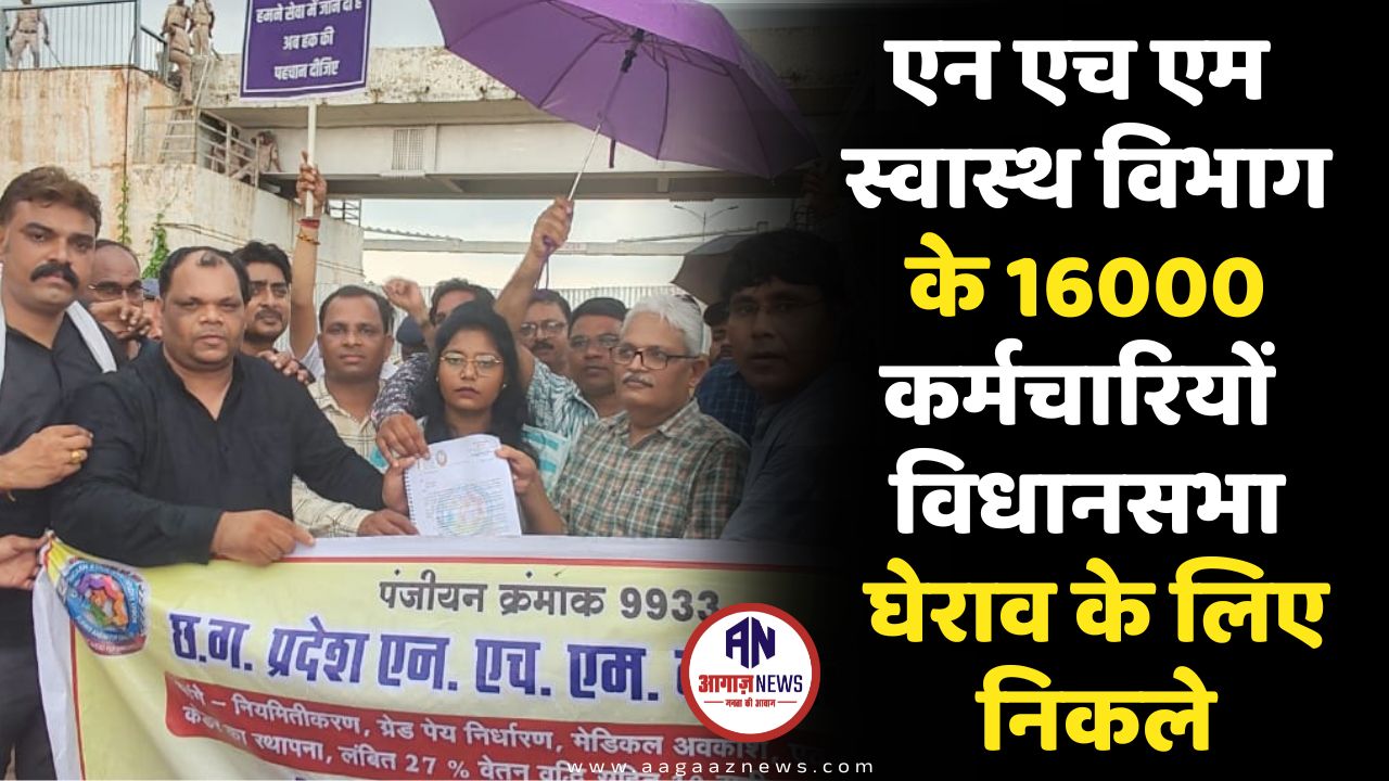 एन एच एम स्वास्थ विभाग के 16000 कर्मचारियों विधानसभा घेराव के लिए निकले