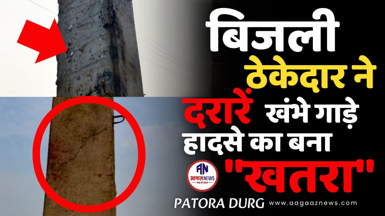 ग्राम पतोरा फोरलाइन सड़क पर दरारों वाले खंभे गाड़े , ठेकेदार की लापरवाही से बड़ा हादसा संभव