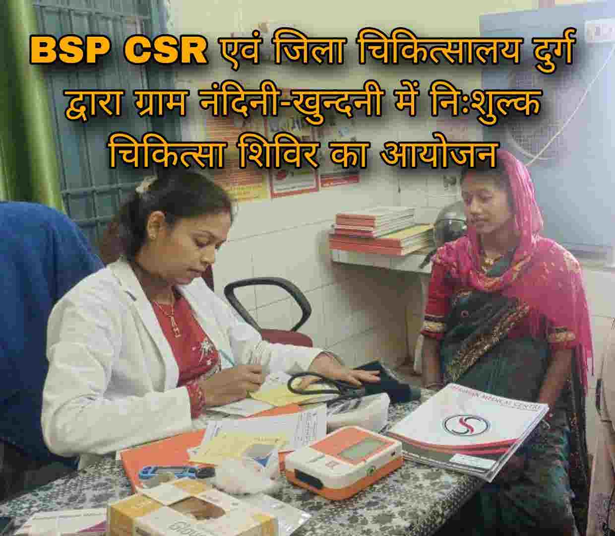 बीएसपी सीएसआर एवं जिला चिकित्सालय दुर्ग द्वारा ग्राम नंदिनी-खुन्दनी में निःशुल्क चिकित्सा शिविर का आयोजन