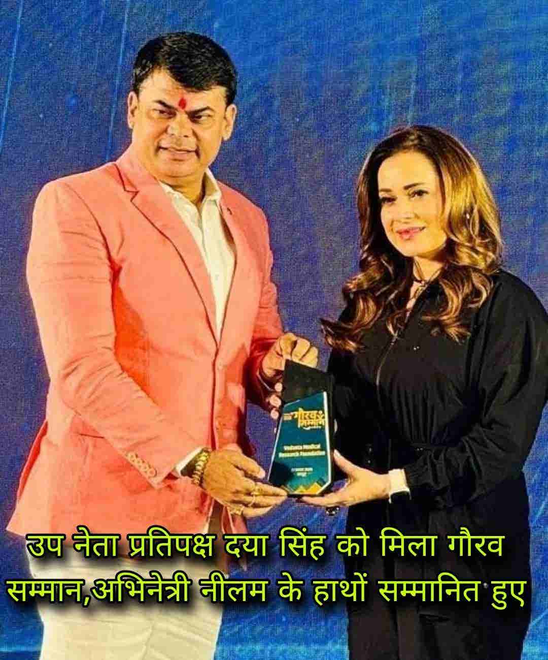 उप नेता प्रतिपक्ष दया सिंह को मिला गौरव सम्मान, अभिनेत्री नीलम के हाथों सम्मानित हुए