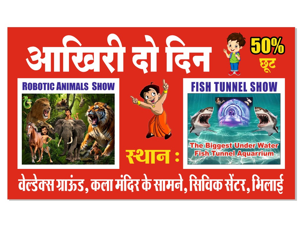 अब भिलाई वासियों के लिए खरीदी और मनोरंजन वाला फिश टेनल एवं रोबोट शो मात्र दो दिन ही शेष।