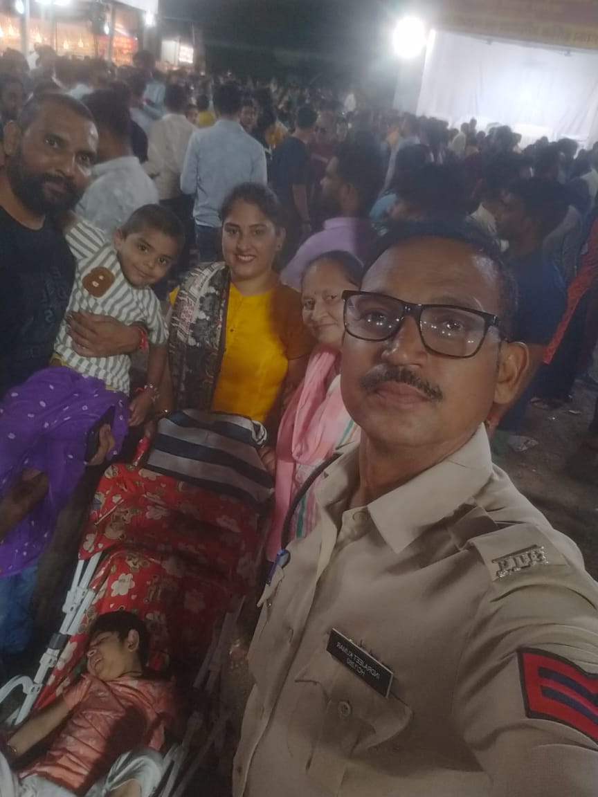 दुर्ग भिलाई भट्टी थाना पुलिस का एक जवान विकलांग बच्चे जो की विल चेयर से आए हुऐ एवं उनके माता पिता को गणेश दर्शन कराने मे मदद के लिए हाथ बटाया…
