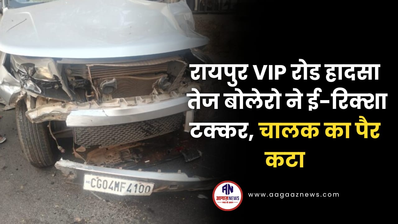 रायपुर VIP रोड हादसा: तेज बोलेरो ने ई-रिक्शा टक्कर, चालक का पैर कटा