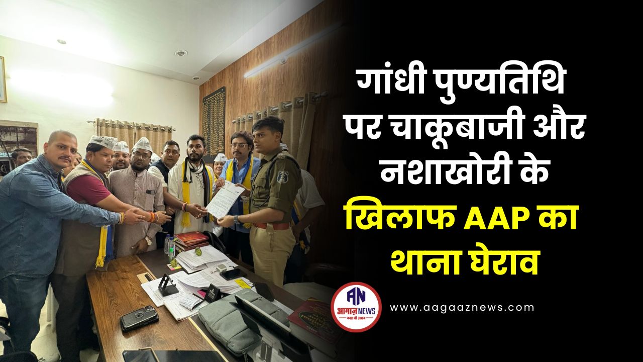 गांधी पुण्यतिथि पर चाकूबाजी और नशाखोरी के खिलाफ AAP का थाना घेराव