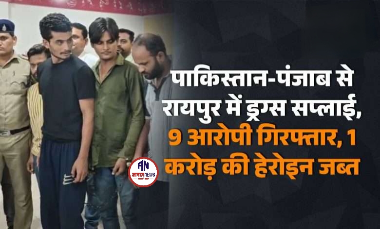 रायपुर में ड्रग्स तस्करी नेटवर्क का भंडाफोड़: पाकिस्तान से जुड़ा कनेक्शन, 9 आरोपी गिरफ्तार, 1 करोड़ की हेरोइन जब्त