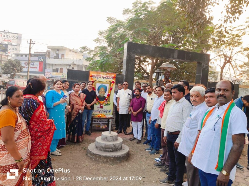 हमारे देश के पुर्व प्रधानमंत्री डॉ. मनमोहन सिंह जी को ब्लॉक कांग्रेस कमेटी दुर्ग ग्रामीण शहर नगर पालिका निगम रिसाली के कांग्रेस जनों ने श्रद्धांजलि सभा का आयोजन कर पुण्य आत्मा को पुष्प अर्पित कर श्रद्धांजलि दी गई इस श्रद्धांजलि सभा को कांग्रेस के पदाधिकारीयों ने संबोधित भी किया देश के पुर्व प्रधानमंत्री डॉ.मनमोहन सिंह जी के द्वारा किये गये कार्यों पर पर प्रकाश डालते हुवे बताया कि डॉ. मनमोहन सिंह जी ने देश के लिए जो आर्थिक नीति बनाई वह बहुत ही देश के लिए कारगर सिद्ध हुवे उन्होने गांव के गरीब मजदूरों के लिए मनरेगा लागू किये जिससे गांव के गरीब मजदूर को बहुत बड़ा सहयोग मिला हमारे देश मे जब करोना जैसी बीमारी आई उस समय गांव के मजदूर किसान के लिए मनरेगा वरदान साबित हुआ इस प्रकार से हमारे देश के लिए पुर्व प्रधानमंत्री डॉ. मनमोहन सिंह जी के द्वारा किये गये कार्यों को हमेशा देश याद करेगा।