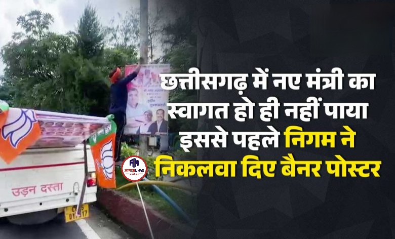 छत्तीसगढ़ में नए मंत्री का स्वागत हो ही नहीं पाया, इससे पहले निगम ने निकलवा दिए बैनर पोस्टर, बना चर्चा का विषय..