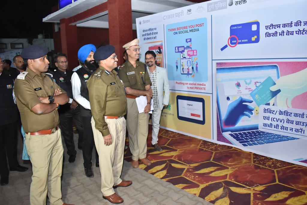 साइबर प्रहरी जागरूकता अभियान के अंतर्गत पुलिस कंट्रोल रूम भिलाई सेक्टर 6 में वर्तमान में होने वाले नए साइबर अपराधों के बारे में बताते हुए प्रदर्शनी भी लगाई गई थी जिसे वरिष्ठ पुलिस अधीक्षक दुर्ग, श्री राम गोपाल गर्ग अतिरिक्त पुलिस अधीक्षक शहर,श्री अभिषेक झा, अतिरिक्त पुलिस अधीक्षक ग्रामीण, श्री अनंत कुमार,अतिरिक्त पुलिस अधीक्षक अपराध, डॉ. अनुराग झा ,सहित समस्त राजपत्रित अधिकारी थाना प्रभारीगण , एक्स आर्मी संघ एवं मीडिया बंधु व अन्य लोगों ने देखकर खूब सराहा। साइबर प्रहरी अभियान को अभी पायलट प्रोजेक्ट के रूप में चला कर आगे अधिक से अधिक लोगों को जोड़ने के लिए वरिष्ठ पुलिस अधीक्षक दुर्ग के द्वारा पुलिस अधिकारियों एवं कर्मचारियों से अपील की गई है जिससे वह लगातार बढ़ रहे साइबर क्राइम में कमी लाई जा सके।