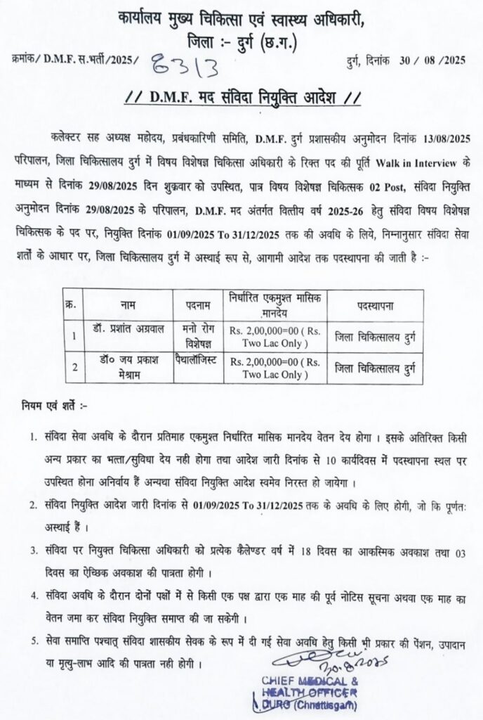 जबकि DMF में रिटायर वाले डाक्टर भी आते हैं| और ड्यूटी भी पूरा समय तक नहीं करते हैं| और इतना सैलरी डाक्टरों को दिया जाता है| जब कि रेगुलर के डाक्टरों को 45 से 55 हजार रुपए महीना और NHM में 50 से 55 हजार महीना | DMF में कार्यरत दुर्ग जिला के स्टाफ नर्स 16500 रूपया ,लैब टेक्नीशियन का 11000 रूपया , डाटा इंट्री ऑपरेटर को 11030 रूपया और चतुर्थ श्रेणी के कर्मचारियों को 9720 रूपया पर महीना चार साल से इतना ही सैलरी दिया जा रहा है|