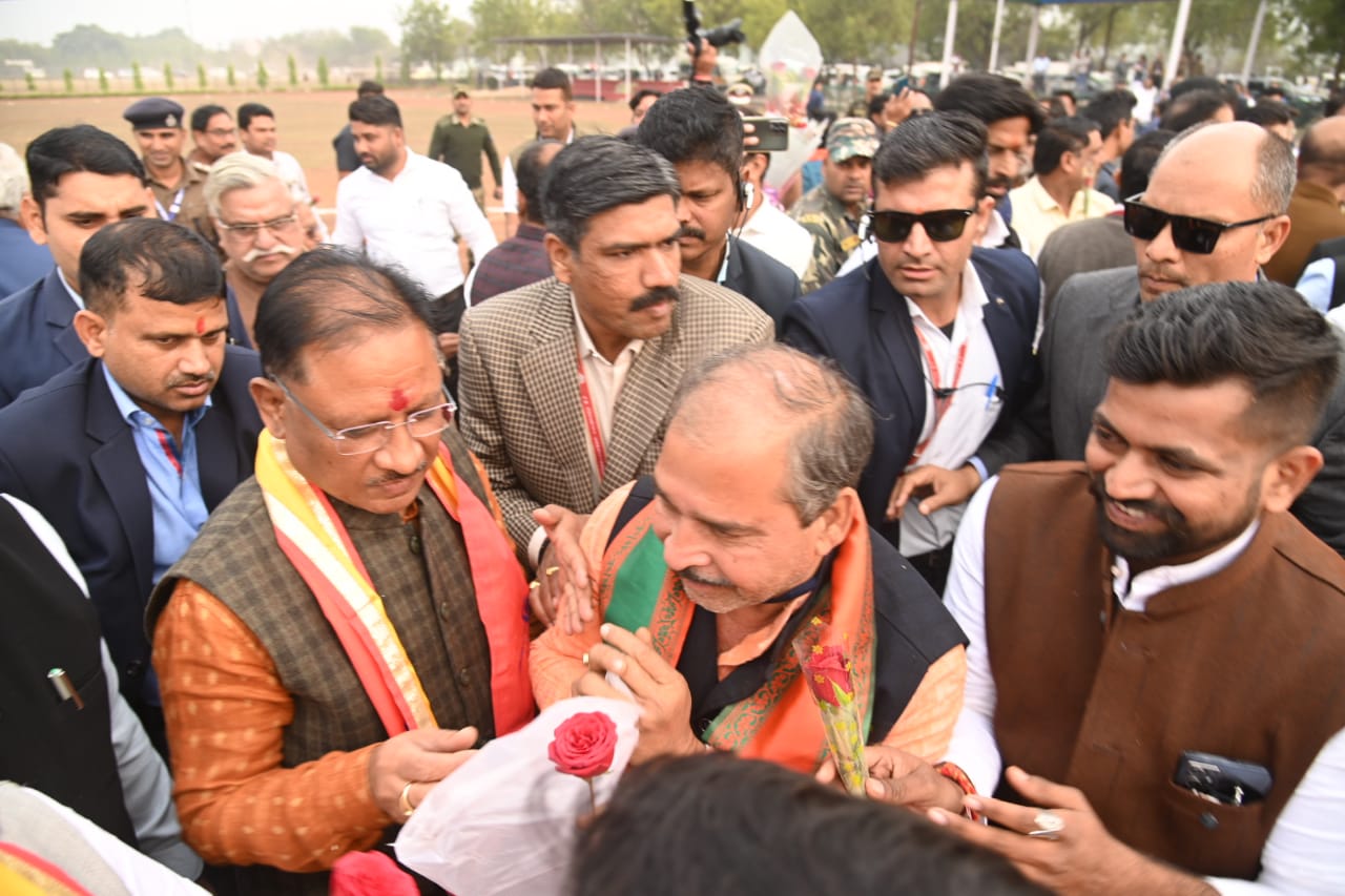 हेलीपेड पर मुख्यमंत्री श्री साय जी का आत्मीय स्वागत