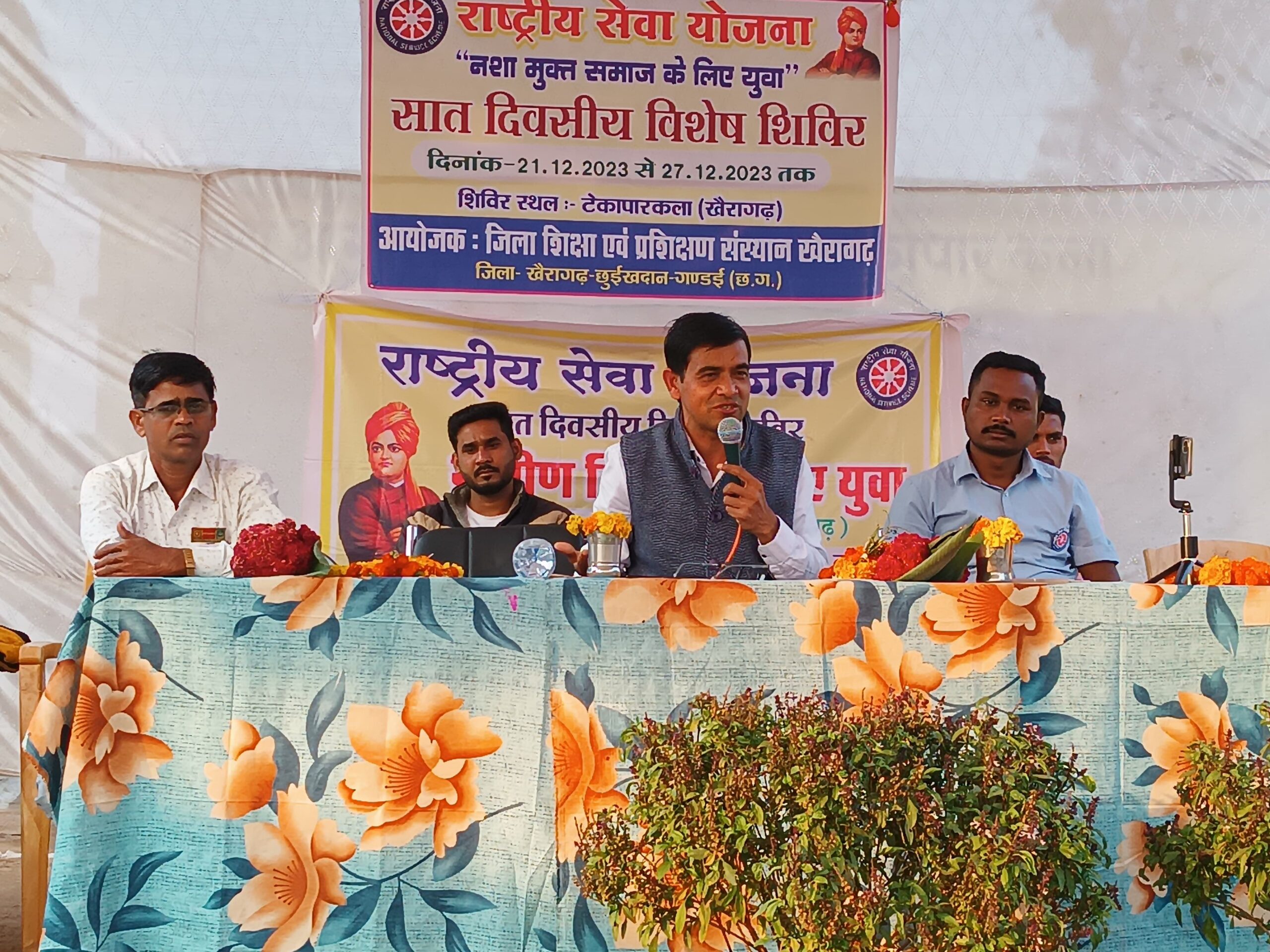 राष्ट्रीय सेवा योजना के सात दिवसीय विशेष शिविर ग्राम टेकापार कला में प्राचार्य डॉक्टर के वी राव के मार्गदर्शन में कार्यक्रम अधिकारी के के वर्मा के द्वारा शिविर संचालित किया जा रहा है।