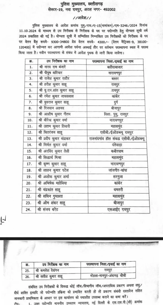 CG में पुलिसकर्मियों को मिला दीवाली तोहफा : 26 सब इंस्पेक्टर को मिला प्रमोशन….