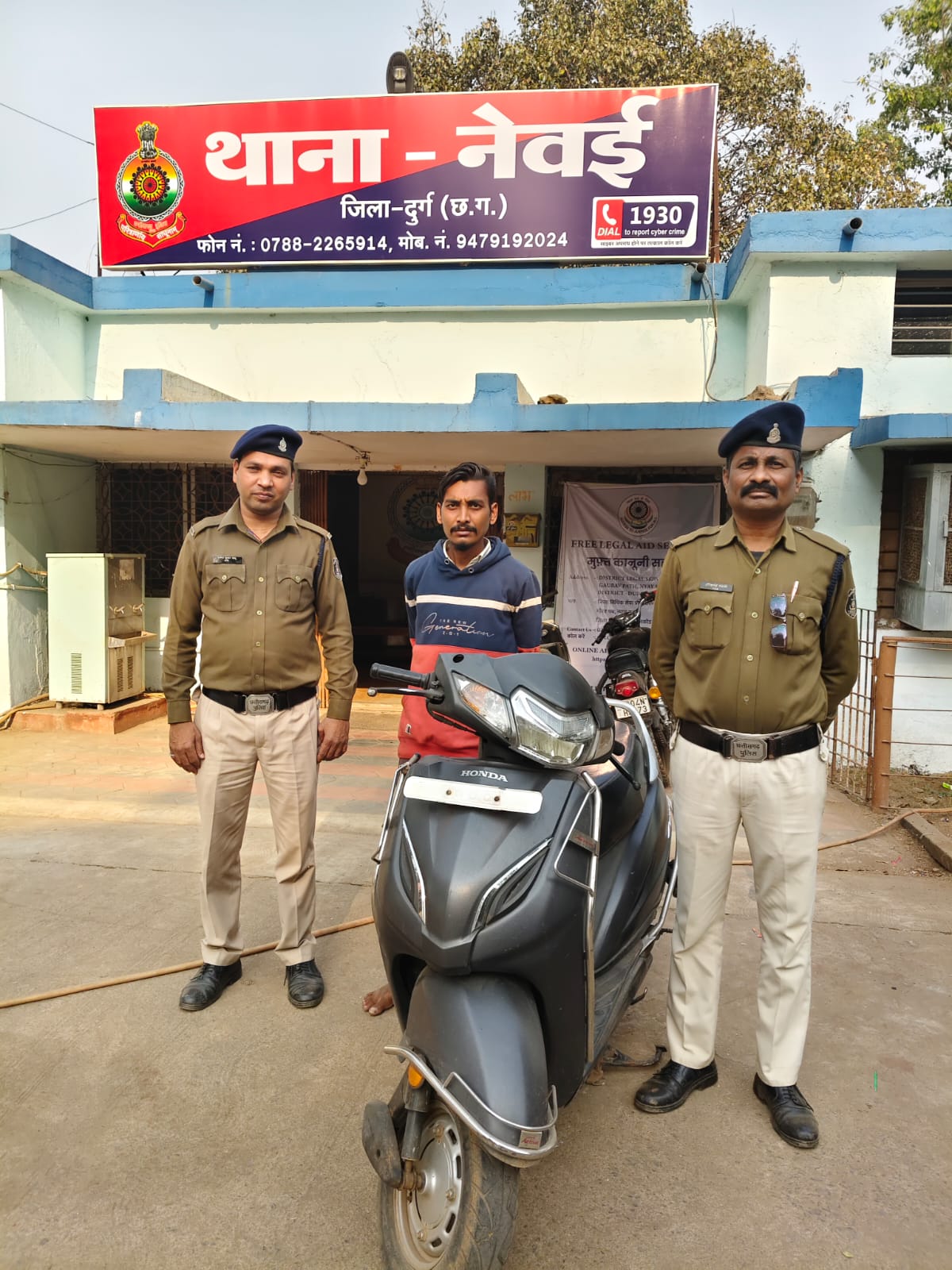 दुर्ग पुलिस (थाना नेवई) कि कार्यवाही- सशक्त एप्प के माध्यम से 05 वर्ष पूर्व चोरी गई एक्टिवा वाहन व आरोपी गिरफ्तार