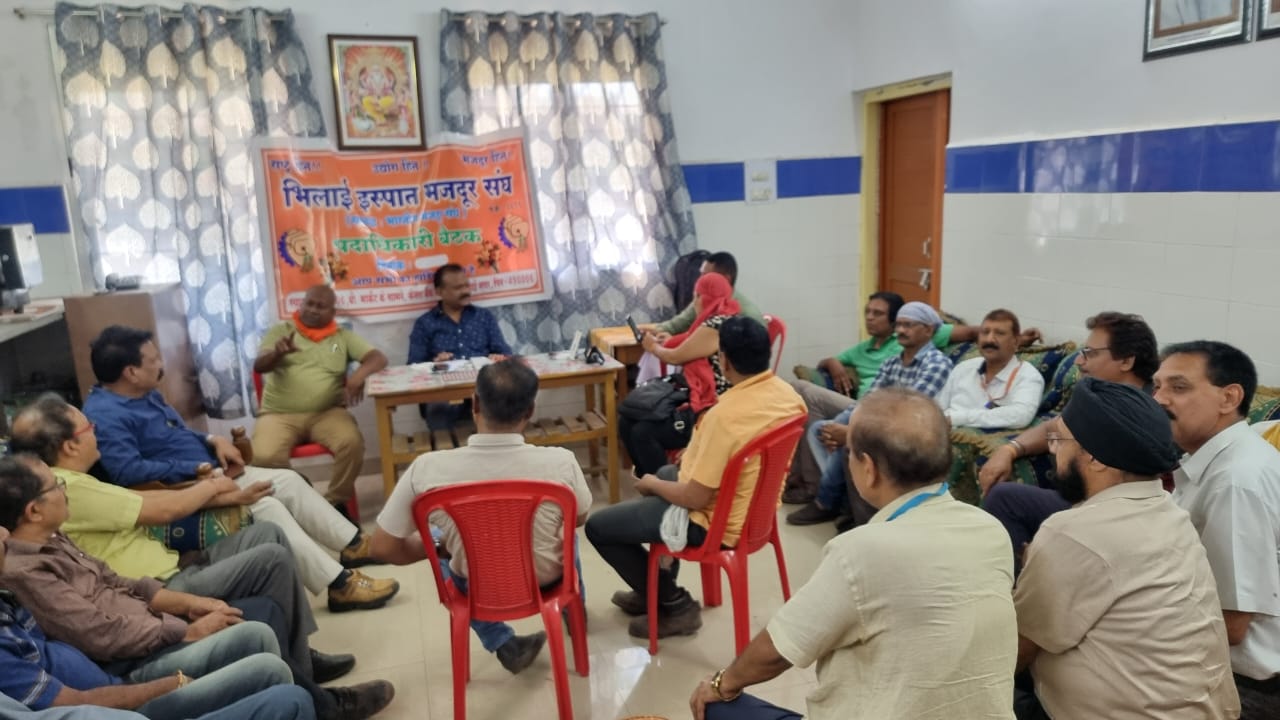 भिलाई इस्पात मजदूर संघ मान्यता प्राप्त यूनियन की आवश्यक बैठक आज कार्यालय में आयोजित किया गया