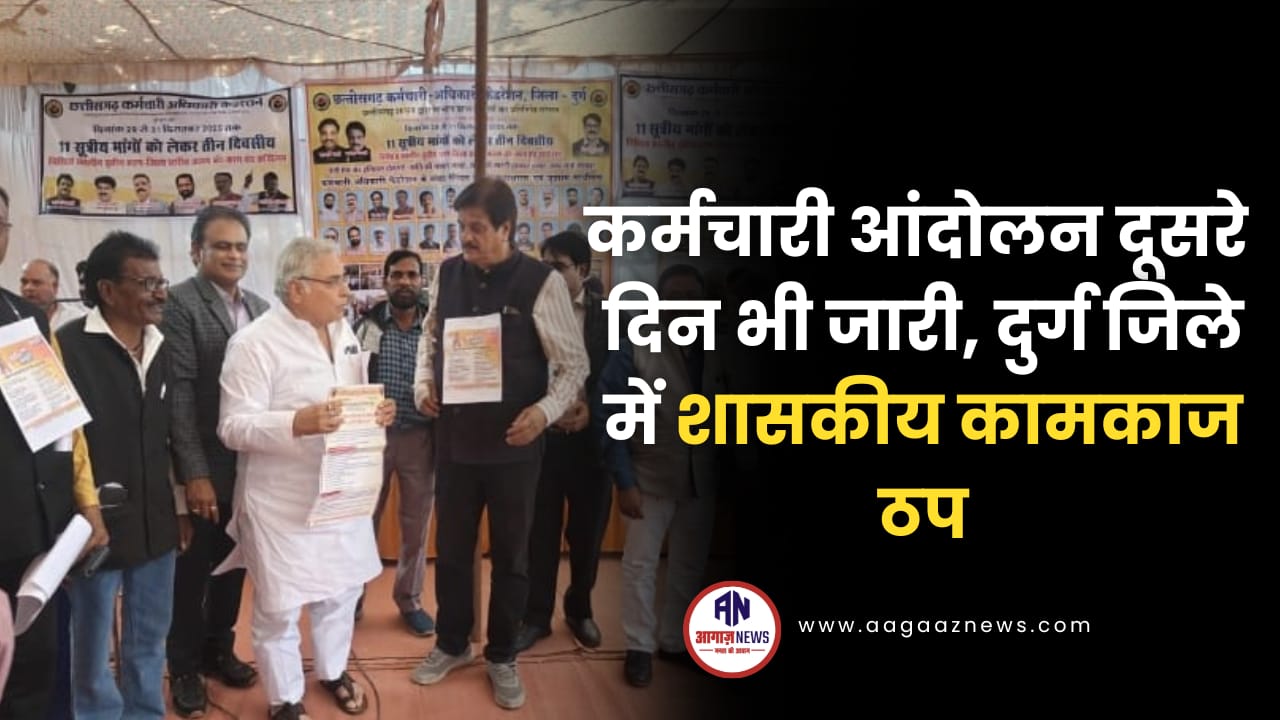 कर्मचारी आंदोलन दूसरे दिन भी जारी, दुर्ग जिले में शासकीय कामकाज ठप