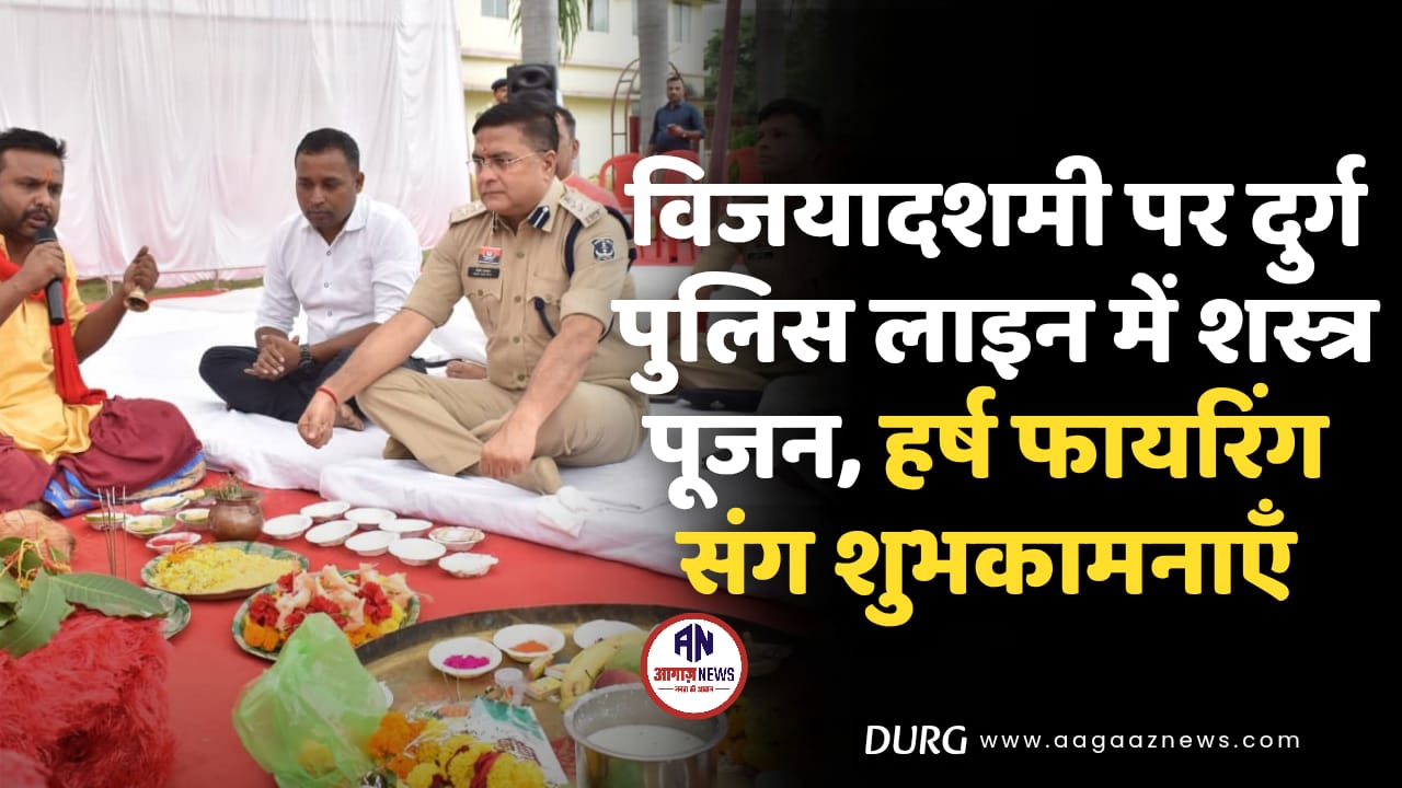विजयादशमी पर दुर्ग पुलिस लाइन में हुआ शस्त्र पूजन, हर्ष फायरिंग के साथ दी गई शुभकामनाएँ