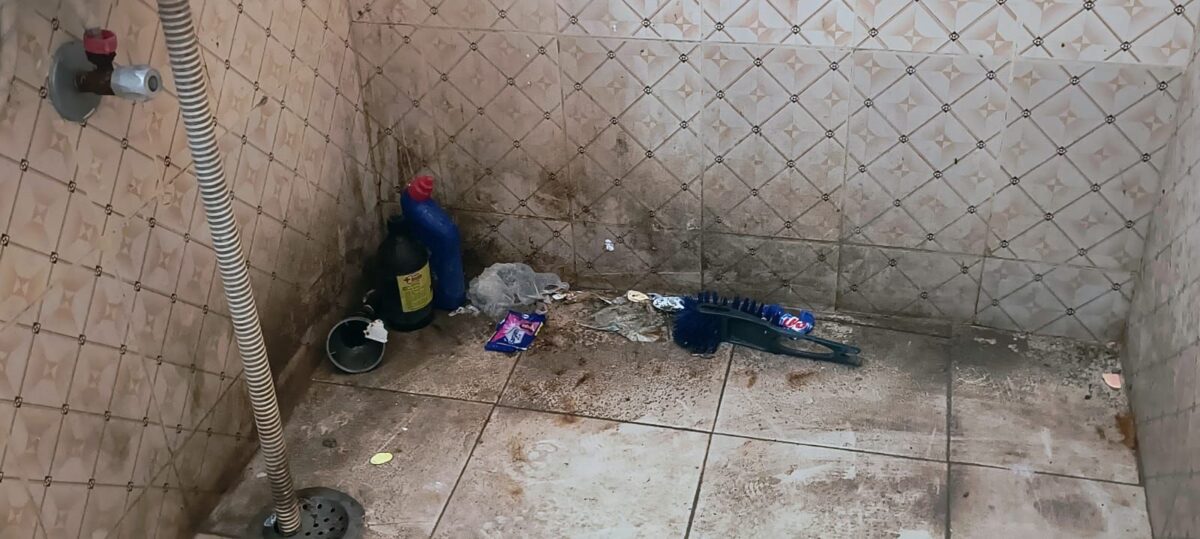 बाथरूमों के दरवाजे टूटे, मजबूरी में खुले में नहाने की नौबत