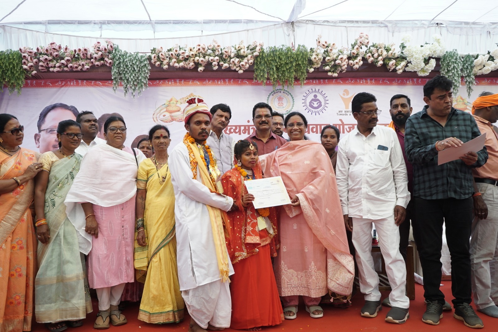 मुख्यमंत्री कन्या विवाह योजना के तहत 150 जोड़़े परिणय सूत्र में बंधे विधायक सुश्री लता उसेण्डी सहित जनप्रतिनिधियों ने नवदंपतियों को दिया आशीर्वाद