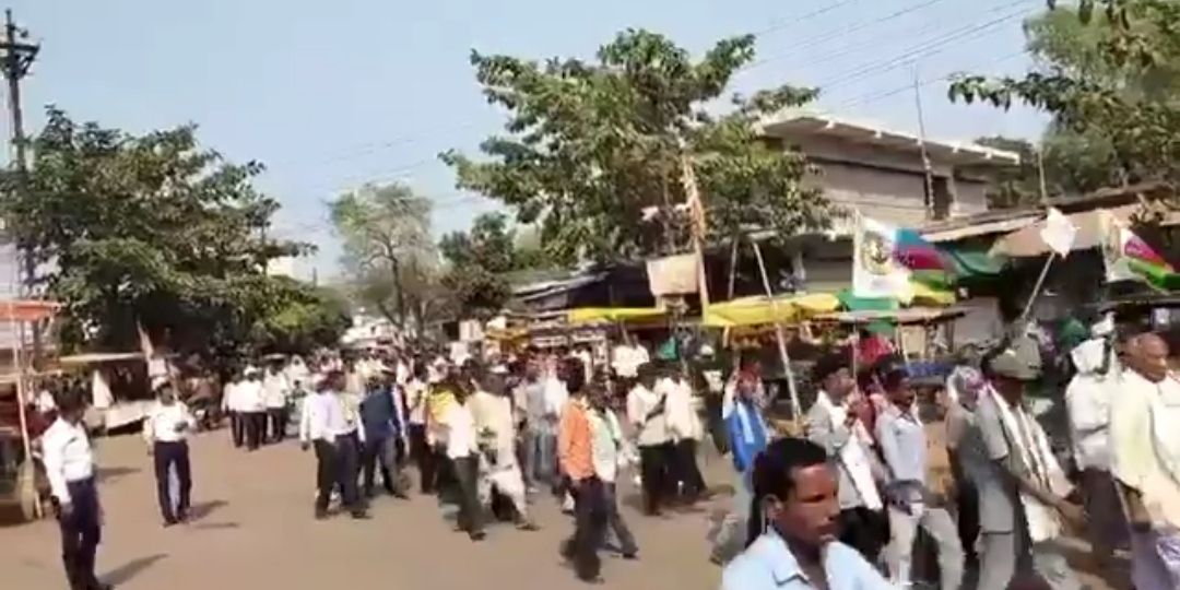 विधायक ईश्वर साहू के पुत्र की गिरफ्तारी को लेकर आदिवासी समाज ने दिया धरना